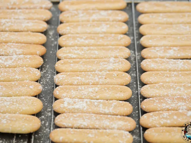 - Laissez refroidir les biscuits boudoirs sur une grille puis saupoudrez les de sucre glace